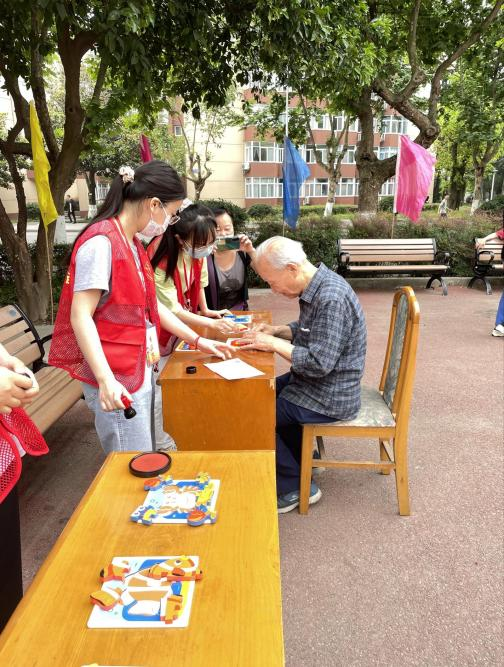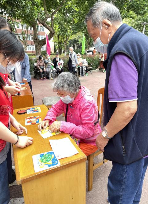 在前院,还能看到拼图和排序串珠的老同志们,即便已过花甲之年,但手依旧灵巧,迅速地完成了动物拼图,并按照排序图在半分钟内完成了串珠,引得其他老同志们纷纷驻足围观,赞扬声不绝于耳。